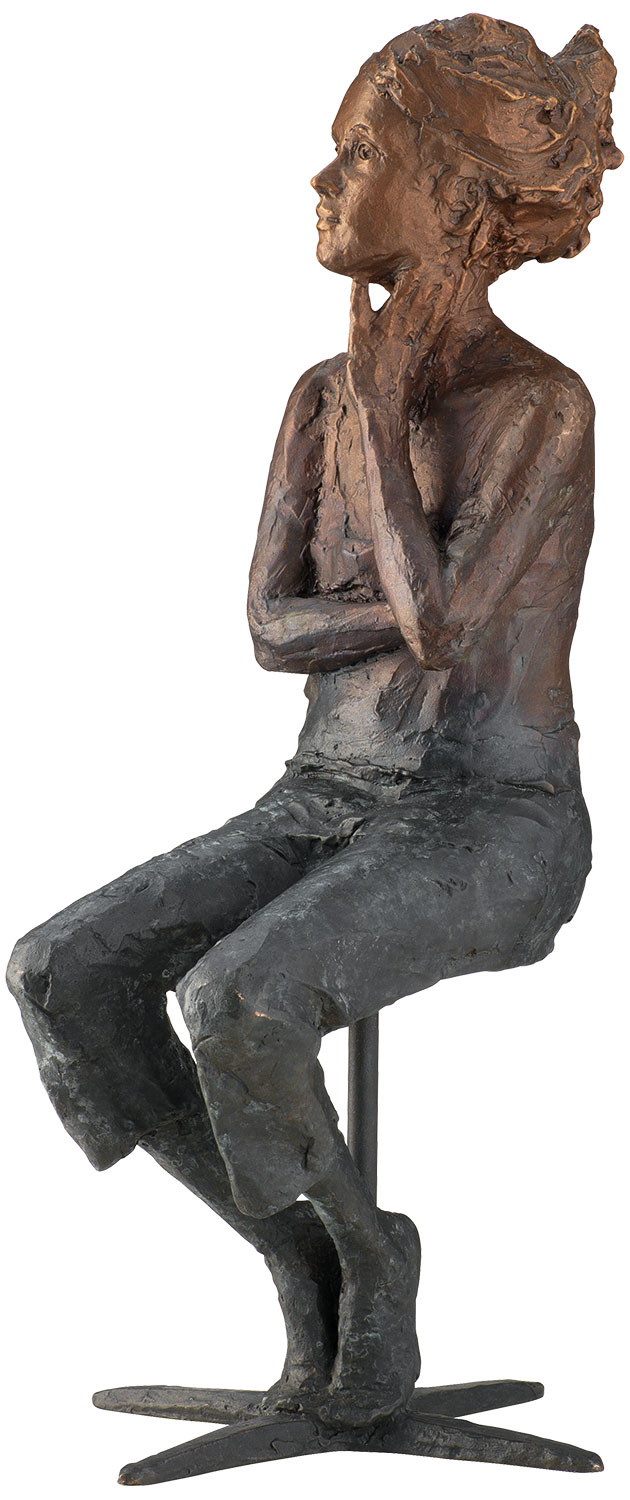 Wat het idee ook is: het krijgt vorm en geeft je een vrolijk en voldaan gevoel, misschien een beetje weemoedig (je weet nooit wat er in het leven uitkomt), maar nu is het er, de goede gedachte, en in je verbeelding is het leuk om het verder te draaien en het nieuwe perspectief voor je te zien. Sculptuur in fijn brons, gegoten met de verloren-wastechniek, met de hand gebeiteld, gepolijst en met een exclusief kleurverloop-patina. Gelimiteerde oplage van 49 exemplaren + 5 E.A. exemplaren, individueel genummerd en gesigneerd, met certificaat. Afmetingen 34,5 x 15,5 x 16 cm (h/w/d). Gewicht ca. 4,6 kg. ars mundi exclusieve editie.