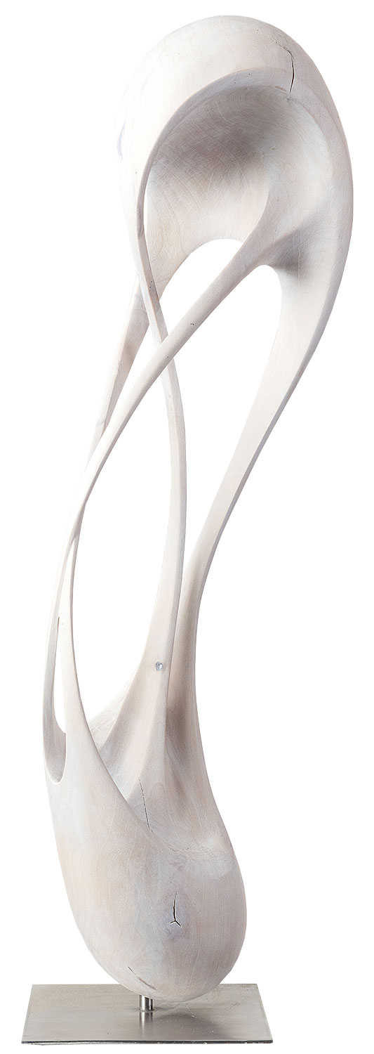 Sculptuur gemaakt van berkenhout, gesneden uit een blok. Gesigneerd. Gemonteerd op een stalen plaat. Afmetingen 75 x 23 x 14 cm (H/W/D). Gewicht 3 kg.