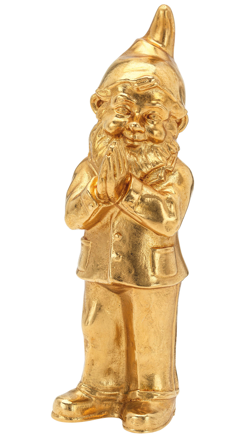 Zwerge genießen seine besondere Beachtung. Dem Konzept- und Aktionskünstler Ottmar Hörl haben sie eine grenzüberschreitende Aufmerksamkeit und Anerkennung beschert. Mit seinen spektakulären Großinstallationen im öffentlichen Raum verfolgt der Professor und ehemalige Präsident der Akademie der Bildenden Künste in Nürnberg das Ziel, den Dialog und die Auseinandersetzung mit dem Spannungsfeld von Kunst und Gesellschaft zu forcieren. Mit seinem betenden Zwerg Ben, den Hörl 2005 erstmalig auf der art.fair Köln durch die Maisenbacher Art Gallery präsentierte und der seine Reaktion auf die Schlagzeile 'Wir sind Papst' darstellt, bringt er die gesellschaftsverbindende und weltweit verstandene Geste des Betens als Symbol geistig-philosophischer Fähigkeiten zum Ausdruck. Limitierte Sonderedition von 980 Exemplaren aus feinvergoldetem Metallguss aufgelegt, signiert und nummeriert. Mit Zertifikat. Format 15 x 5,5 x 6 cm (H/B/T). Gewicht ca. 1,2 kg. ars mundi Exklusiv-Edition.