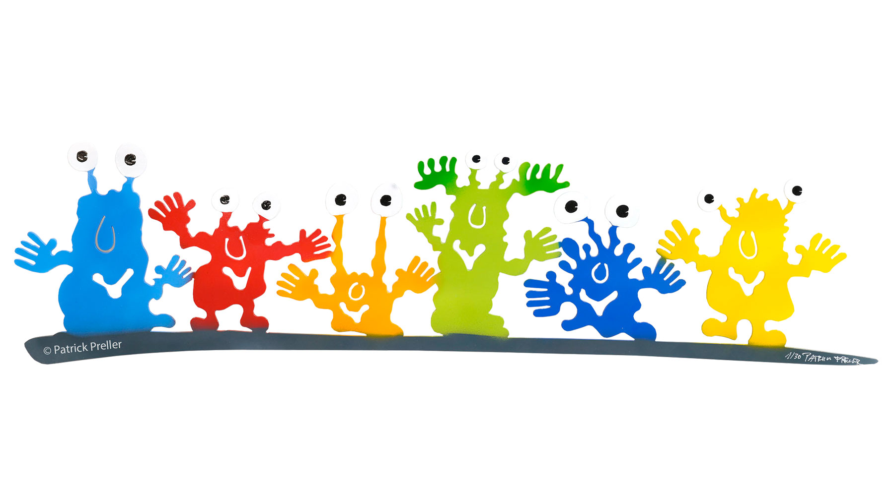 Die Skulptur 'Auf der Linie' ist aus lackiertem Stahl. Limitierte Auflage 30 Exemplare, nummeriert und vom Künstler handsigniert. Format 25 x 96 cm (H/B). Gewicht 2 kg.