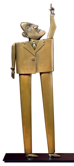 Skulptur in feiner Bronze, patiniert, teilweise poliert. Von Hand gegossen im Wachsausschmelzverfahren. Auflage 90 Exemplare, nummeriert und signiert. Höhe 100 cm, Breite 50 cm, Tiefe 16 cm. Gewicht 25 kg.