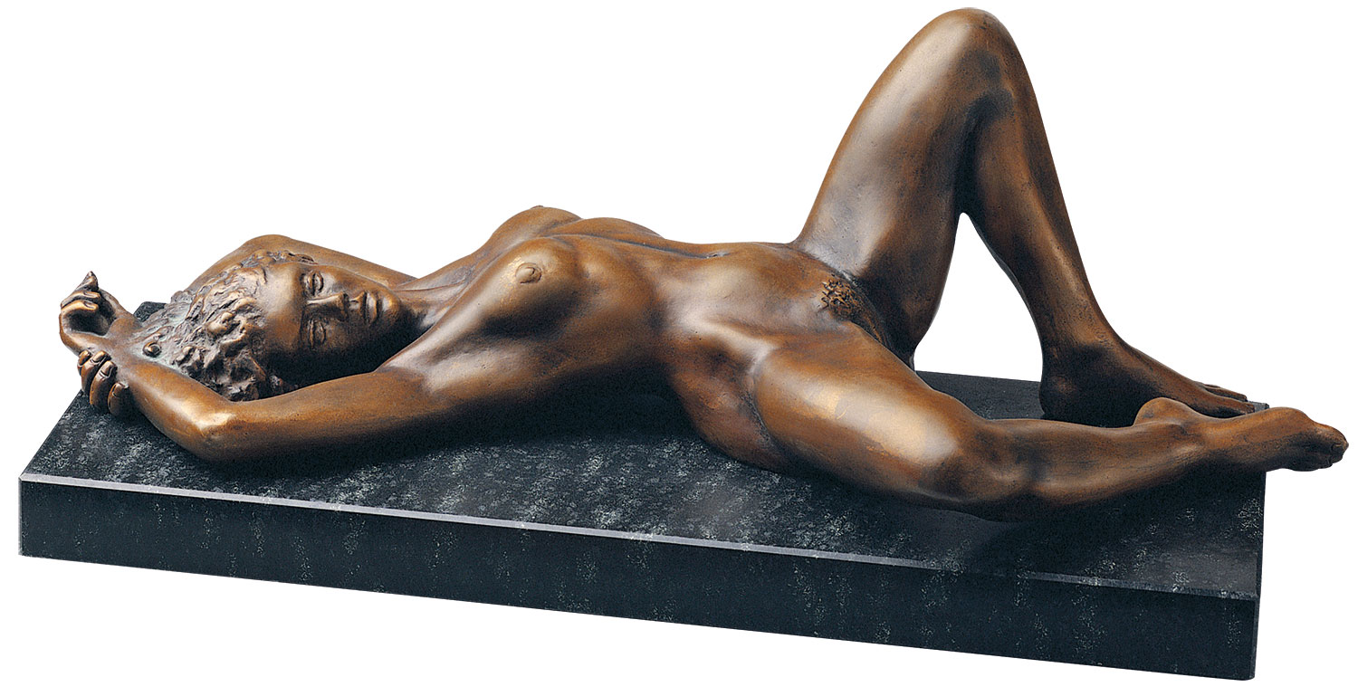 Zarte Erotik der klassischen Moderne: Hohbergers Skulptur Europa, die er 1992 geschaffen hat, ist von einer offenen und entwaffnenden Sinnlichkeit. Europa, Symbol des Weiblichen, nicht die vergängliche Schönheit der Jugend, sondern der ewige Ansporn für den Mann, sich zur Leistung zu erheben. Es ist der Moment vor der Entführung: Selbstvergessen und völlig entspannt entzückt dieser Frauenakt von Peter Hohberger jeden, der ihn sieht. Wir erahnen, was Zeus bewegte, als er Europa in der Gestalt eines Stieres entführte.Edition in Bronze. Gegossen im Wachsausschmelzverfahren, fein patiniert und poliert. Limitierte Auflage 99 Exemplare, nummeriert und signiert. Format 50,5 x 18,5 cm.
