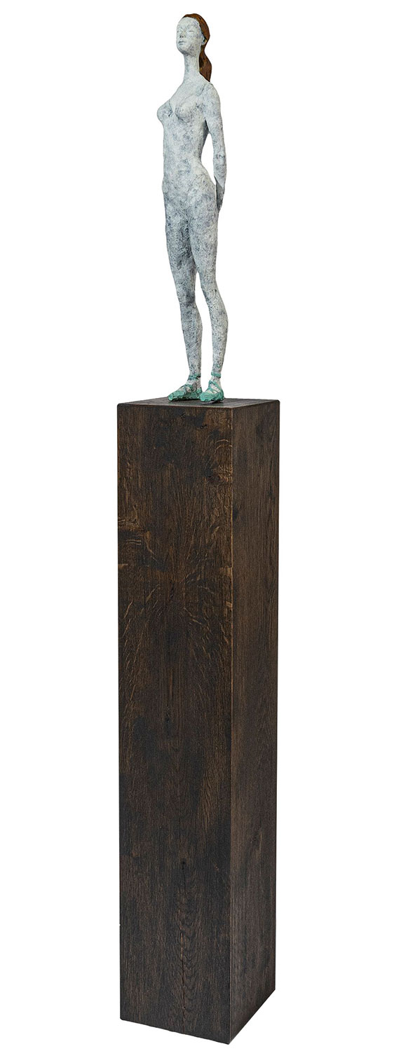 Skulptur in feiner Bronze, von Hand gegossen im Wachsausschmelzverfahren, weiß patiniert mit partiellen Farbakzenten (nur für den Indoor Gebrauch). Inklusive Sockel. Limitierte Auflage 75 Exemplare, nummeriert und signiert, mit Zertifikat. Format Skulptur 60 x 12 x 9,5 cm (H/B/T). Format Sockel 100 x 20 x 20 cm (H/B/T). Gesamtgewicht ca. 35 kg.