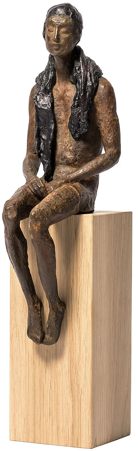Skulptur in feiner Bronze, patiniert, von Hand gegossen im Wachsausschmelzverfahren. Limitierte Auflage 75 Exemplare, nummeriert und signiert, mit Zertifikat. Format Skulptur mit Holzsockel 43,5 x 14 x 14 cm (H/B/T). Gewicht ca. 2,5 kg.