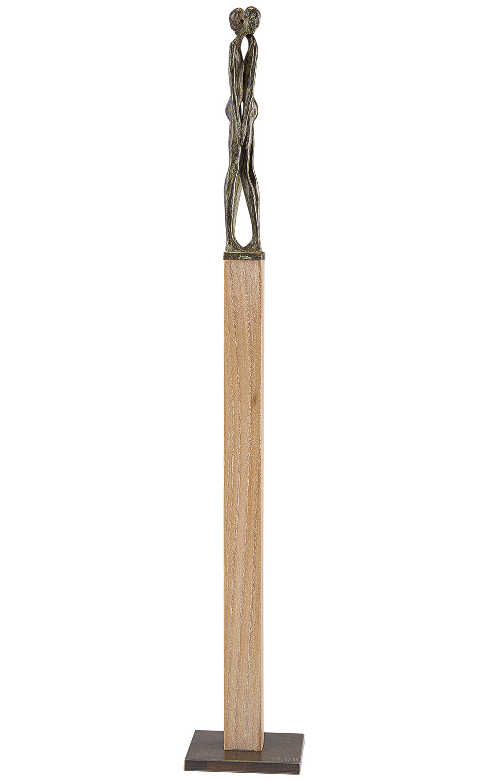 Skulptur in feiner Bronze, von Hand im Wachsausschmelzverfahren gegossen, zum Teil patiniert und poliert. Auf gekalkter Holzstele. Limitierte Auflage 99 Exemplare, nummeriert und signiert, mit Gießereipunze. Format Skulptur 16 x 4,5 x 2,5 cm (H/B/T). Gesamthöhe 48 cm. Gewicht 750g. ars mundi Exklusiv-Edition.