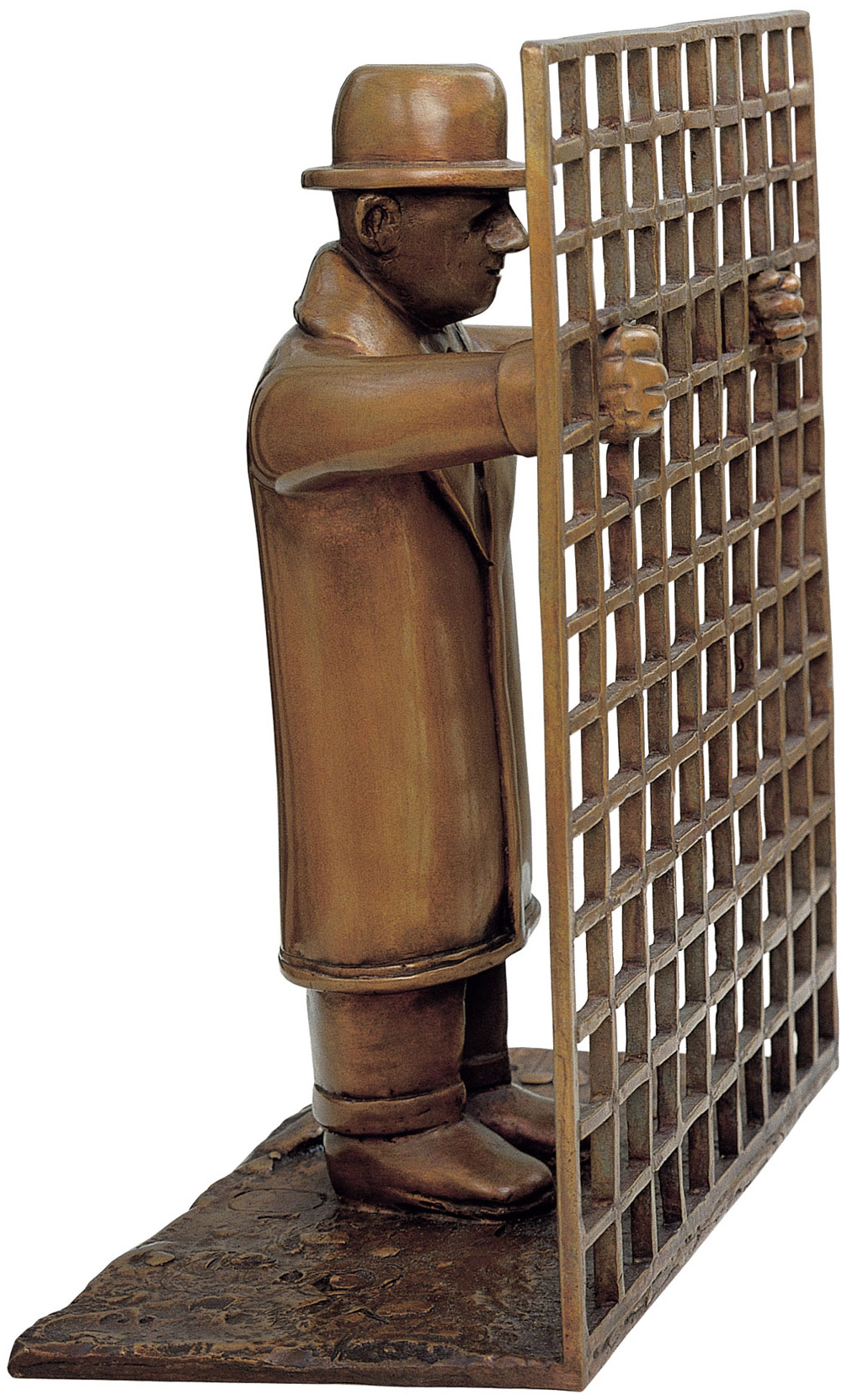 Dieses Kunstwerk setzt die Fantasie in Gang: Der Betrachter mag sich den Mann mal vor und mal hinter dem Gitter vorstellen und sich überlegen, ob er nach einem geliebten Menschen oder der Freiheit Ausschau hält... Signiert und nummeriert. Limitierte Weltauflage 498 Exemplare. Format 19,5 x 12 x 26,5 cm. Edition in feiner Bronze, von Hand gegossen im Wachsausschmelzverfahren. Limitierte Auflage 199 Exemplare.