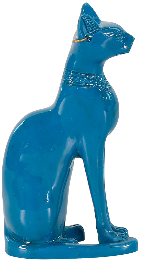 Die Staatsgöttin Bastet stand bei den Pharaonen für die lebenslange Kraft der Sonne, sie gilt als Beschützerin der Menschen. Polymerer Kunstguss. Format 14 x 4 x 7,5 cm (H/B/T). Gewicht 0,2 kg.