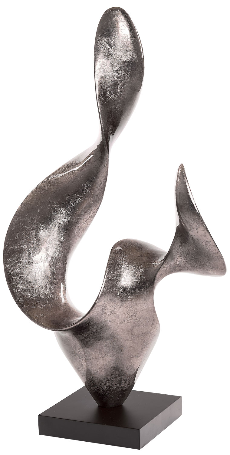 Die Skulptur 'Firedance' inszeniert sich durch die elementare Einfachheit natürlicher Bewegung im modernen Stil. Das Designobjekt zeigt sich als zeitlose Kreation, welche ihre Ausdruckskraft aus Reduktion, Eleganz und innovativem Formenstil bezieht. Aus hochwertigem Resin, handwerklich anspruchsvoll hergestellt. Auf einem schwarzen Sockel. Format inkl. Sockel ca. 88 x 28 x 46,5 cm (H/B/T). Gewicht ca. 4 kg. Version in warmem Silber.