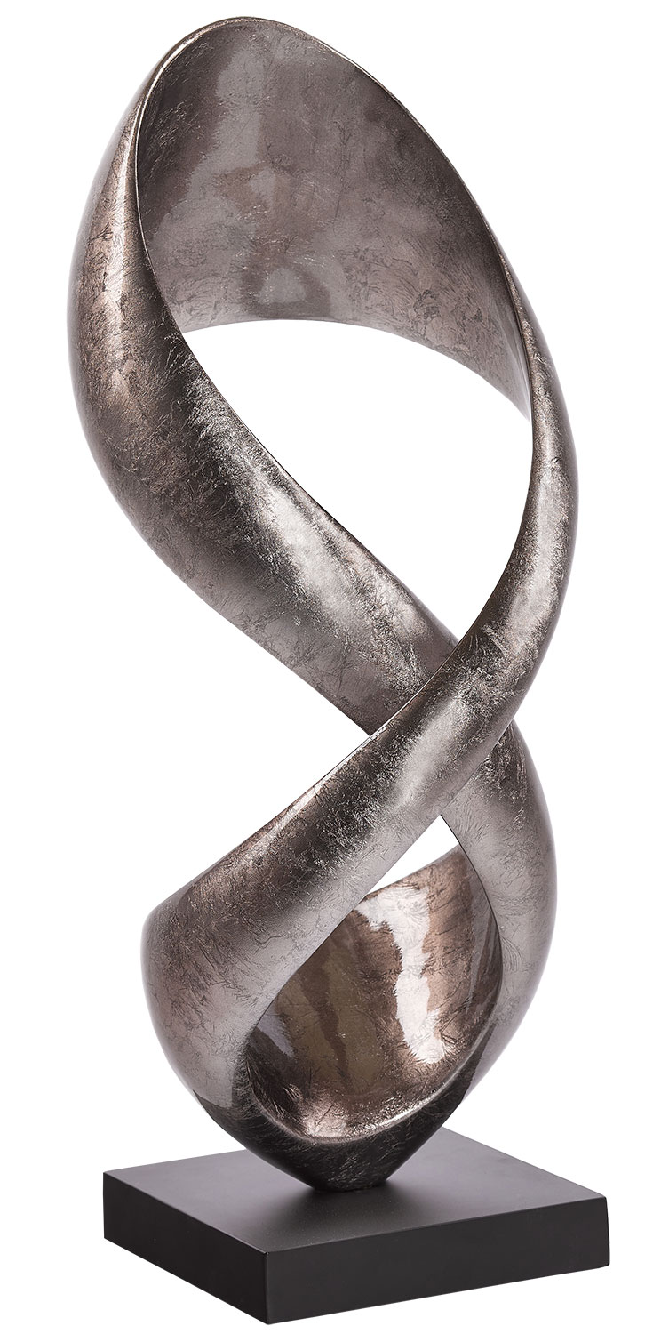 Die schwungvolle Skulptur 'Infinity' inszeniert Räume. Als Designobjekt betont es den persönlichen Stil und gibt visuelle Orientierung. Aus hochwertigem Resin, anspruchsvoll hergestellt. Format inkl. schwarzem Sockel 72 x 33 x 25 cm (H/B/T). Gewicht ca. 5,5 kg. Silberfarbene Version.