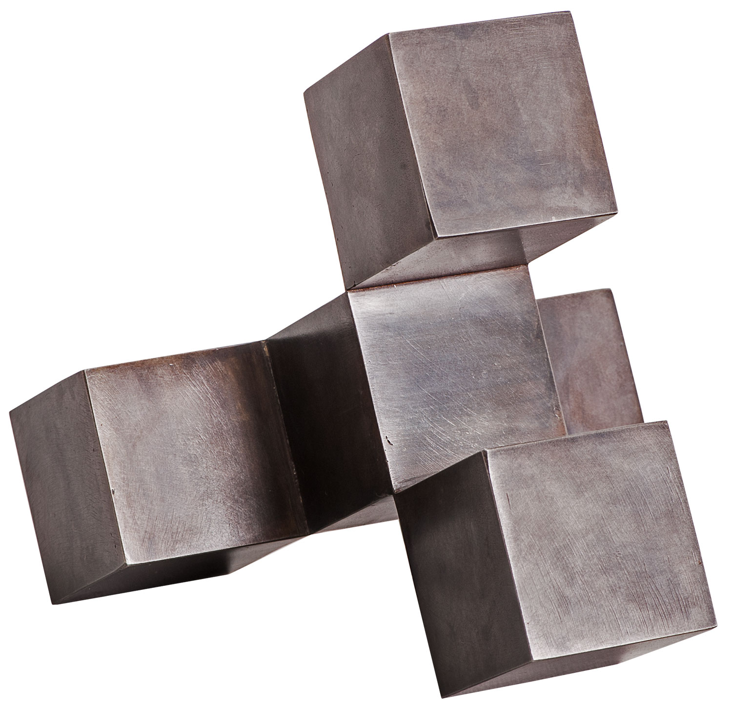 Skulptur aus massivem Stahl, von Hand gefertigt und patiniert. Limitierte Auflage 10 Exemplare, nummeriert und signiert. Format 15 x 15 x 15 cm (H/B/T).