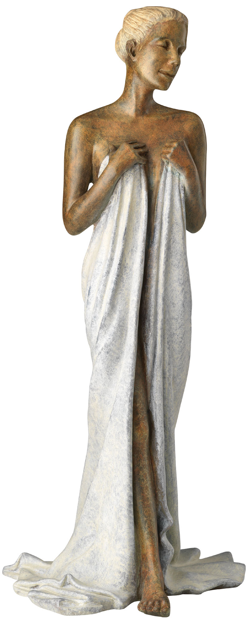 Lisa - en sekulär skönhetsgudinna. Att kalla den franske skulptören Alain Choisnets verk, född 1962 i Bretagne, för klassiska är inte helt orimligt: Han gillar uppenbarligen att orientera sina verk efter antikens klassiska estetik, att utföra kroppsformer och draperingar i subtila detaljer och på så sätt skapa, till exempel i sin skulptur "Lisa", en hyllning till kvinnligheten som - helt antikt - kan få henne att framstå nästan som en skönhetsgudinna. Samtidigt är det inte mindre uppenbart att "Lisa" är en helt och hållet modern kvinna. Choisnet strävar alltså inte bara efter perfekt utformad realism och subtil sensualitet, utan hans "Lisa" utstrålar också lugn och fattning, vilket kännetecknar hans huvudperson som en stark och självsäker personlighet. Edition i fin brons. Skulptur gjuten med tekniken för förlorat vax, patinerad och polerad för hand. Begränsad upplaga om 199 exemplar, numrerad och signerad. Storlek 19,5 x 41,5 x 17 cm (B/H/D). Vikt 5,2 kg. ars mundi exclusive edition.