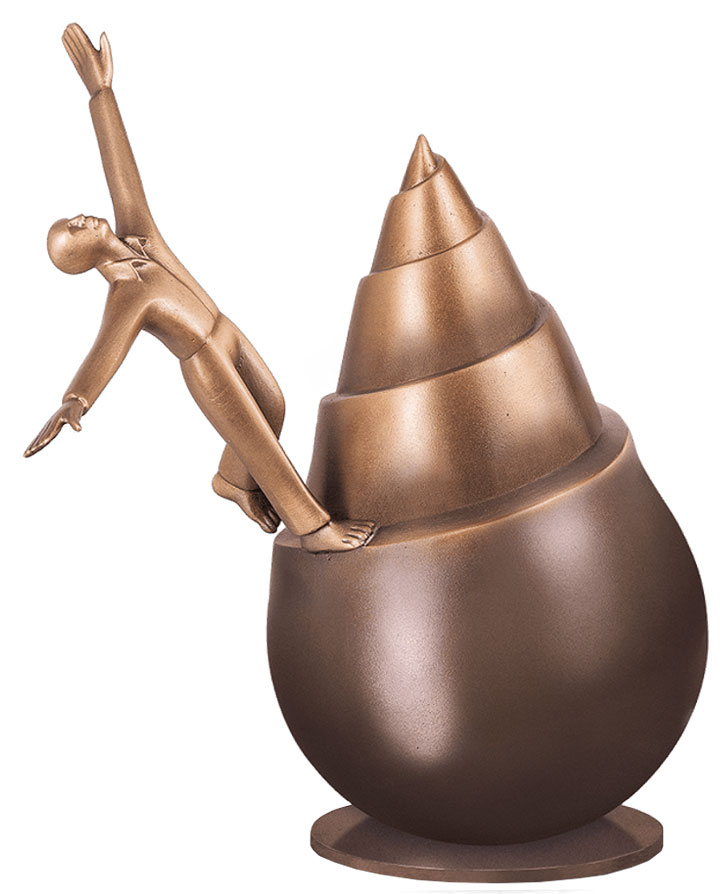 Bucci kombinerar den närmast "matematiska" konstruktionen av konen, vässad i kontinuerliga slingor, med en figur som ger sig ut för att erövra oändligheten. Skulptur i fin brons, ciselerad och patinerad. Gjuten för hand med hjälp av tekniken för förlorat vax. Begränsad upplaga om 49 exemplar, numrerad och signerad. Format 25 x 24 x 13 cm (h/w/d). På sockel av brons: höjd 0,4 cm, Ø 10,5 cm. Vikt ca 4 kg.