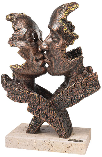 Kyssen - känsligt iscensatt av den internationellt erkända spanska konstnären Angeles Anglada.skulptur gjord av gjuten konst i stenutseende, grönpatinerad och signerad. Endast tillgänglig i denna färg som en exklusiv utgåva från ars mundi. Format 20 x 35 x 13 cm (B/H/D). Vikt ca 4,5 kg.