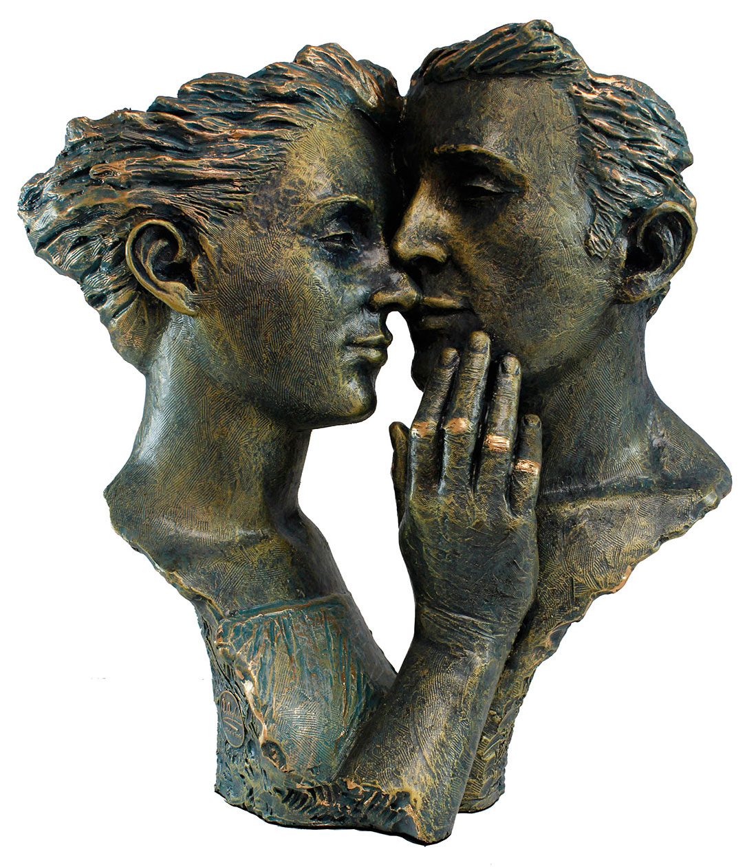 Sambandet mellan man och kvinna. Angeles Angladas skulptur "Devotion" är en ovanlig hemaccessoar med gott om potential för filosofisk kontemplation. Skulptur av gjuten sten, grön- och bronspatinerad. Storlek 33 x 31 x 15 cm (h/w/d).