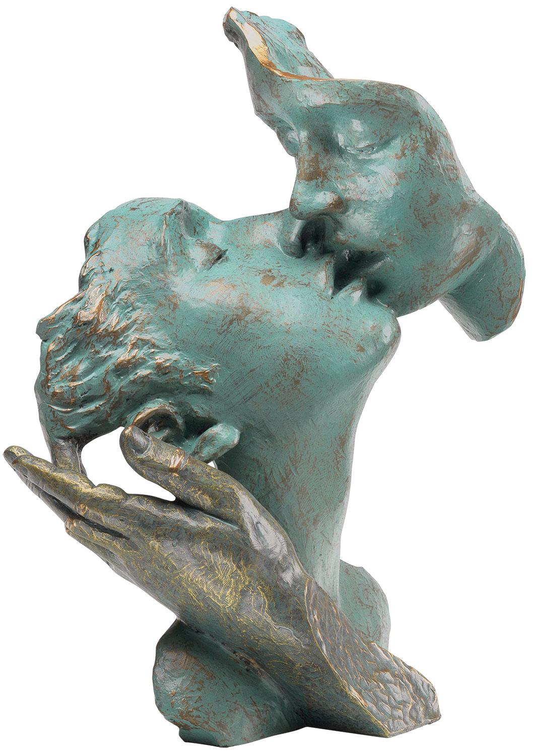 Förmodligen det vackraste tillvägagångssättet - ögonblicket precis före kyssen. Den spanska skulptören Angeles Anglada skapar utrymme för essensen av detta ögonblick genom skulpturala allusioner. Tillverkad av gjuten sten, grön och bronspatinerad. Storlek 30 x 25 x 15 cm (H/W/D). Vikt 2,4 kg.