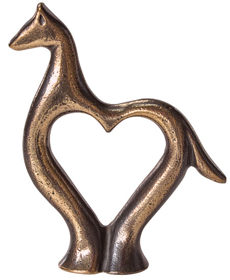 Bernardo Espostos hjärtformade hästskulptur är en lämplig gåva till speciella personer. Gjuten i sand, patinerad och polerad för hand. Storlek 10 x 8 x 2 cm (h/w/d). exklusiv utgåva från ars mundi.
