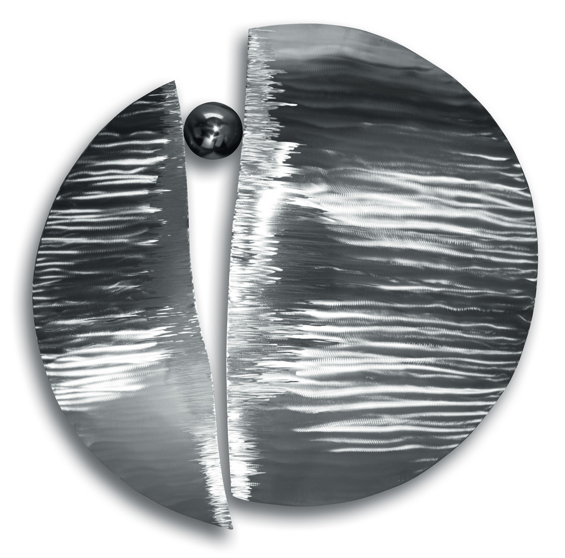 Här - trots all abstraktion - är det månen som nästan omedelbart befinner sig framför betraktarens ögon. "Sterling Journey" leker med ljuset: när ljuset förändras visar ytan en rörlig, lätt krusning och kastar ett silvermatt ljus tillbaka in i rummet. Väggobjekt i polerat rostfritt stål, diameter 94 cm. Vikt ca 10 kg. För inomhus- och utomhusbruk.