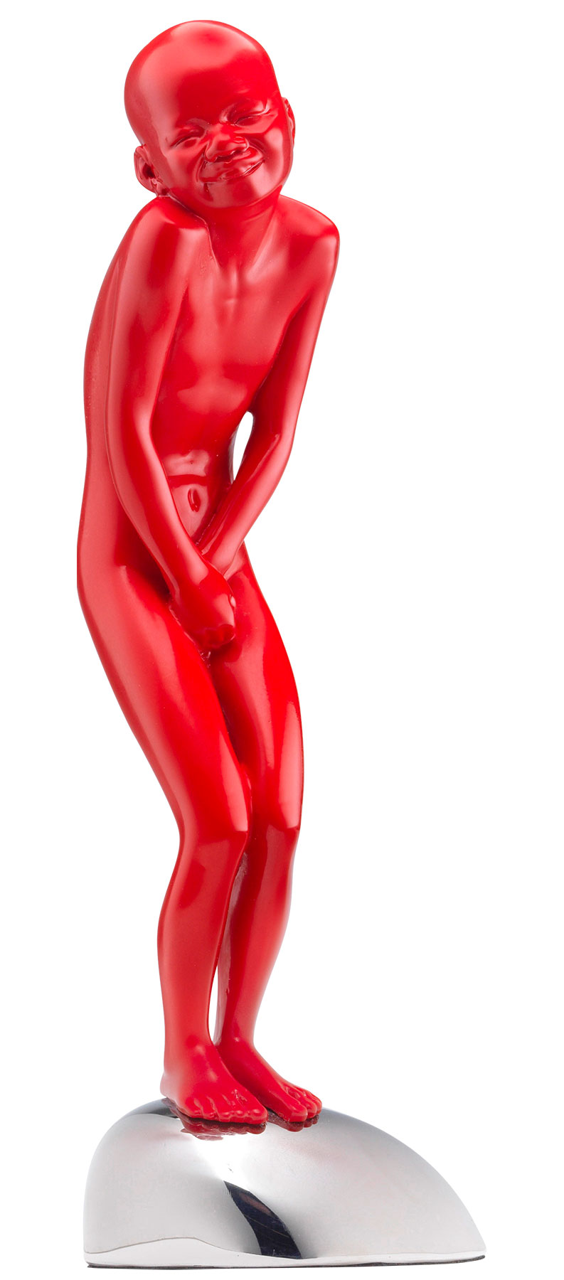 I sina verk behandlar Chen Wenling olika aktuella men också tidlösa teman, t.ex. förändringar i samhället, människans natur eller det växande konsumentbeteendet. Hans skulpturer är fulla av symbolik och kombinerar kritiska kommentarer med subtil humor. Den ibland groteska överdriften av motiven gör dem särskilt gripande. Så är också fallet med skulpturen "Shy Boy", som visar en naken, sorglös pojke - dock inte realistiskt, utan i den starka signalfärgen rött och med surrealistiska former av armar och ben. Denna medvetna manipulation av den mänskliga formen gör honom till en självständig och kraftfull symbol för frihet, naturlighet och livsglädje.bronsskulptur, handpatinerad i rött, gjuten med tekniken för förlorat vax på en bas av rostfritt stål. Begränsad upplaga om 999 exemplar, signerad. Med certifikat. Storlek 30 x 11 x 9 cm (h/w/d). Vikt 1,2 kg.
