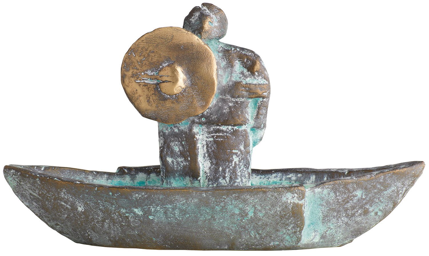 Produktinformation "Christoph Fischer: Skulptur "Wächter im Boot" (2023), version i grön brons"