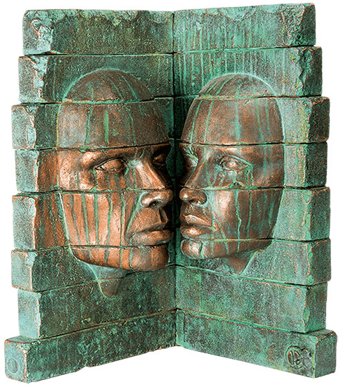 De är vända mot varandra och har varit det under en lång tid. Girauds dubbelporträtt är ett porträtt av två människor och en skildring av deras långa gemensamma historia. Skulptur i brons, gjuten med tekniken för förlorat vax, mejslad och patinerad för hand. Begränsad till 12 numrerade och signerade exemplar. Storlek 39 x 35 x 19 cm (h/b/d). Vikt ca 19,9 kg.