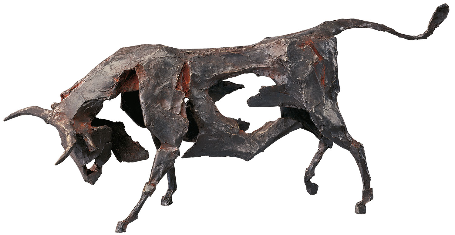 Hovarnas stampande kan nästan kännas fysiskt, damm virvlar upp, het andedräkt verkar svepa runt betraktaren: "Jag vill avbilda djurets väsen mer än djuret självt", säger Dieter Finke. Skulptören reducerar på ett mästerligt sätt den primära kulturella symbolen, tjuren, till dess elementära strukturer. Skulptur som ars mundi exclusive edition i fin brons, begränsad världsutgåva om endast 199 exemplar. Gjuten med tekniken för förlorat vax, finpolerad, patinerad, med signatur och gjuterimärke. Storlek 68 x 29 cm.