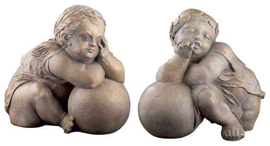 Produktinformation "Hans Daucher: Repliker "Putti från Fuggerkapellet II + III" i ett set, gjuten sten antik finish"