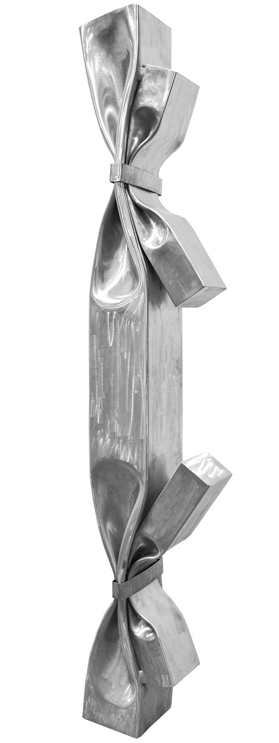 "Homage to Christo and Jeanne-Claude" är en serie av konstnären Jan Köthe och symboliserar den inplastade riksdagen med sina veck och förträngningar och visar samtidigt den nära relationen mellan konstnärsparet. Originalskulptur i rostfritt stål, 2015, handsignerad, daterad, titulerad. Storlek 200 x 36 x 23 cm (h/w/d). Vikt 67 kg.
