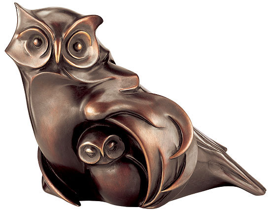 Produktinformation "Jochen Bauer: Skulptur "Uggla med ung fågel", brons"
