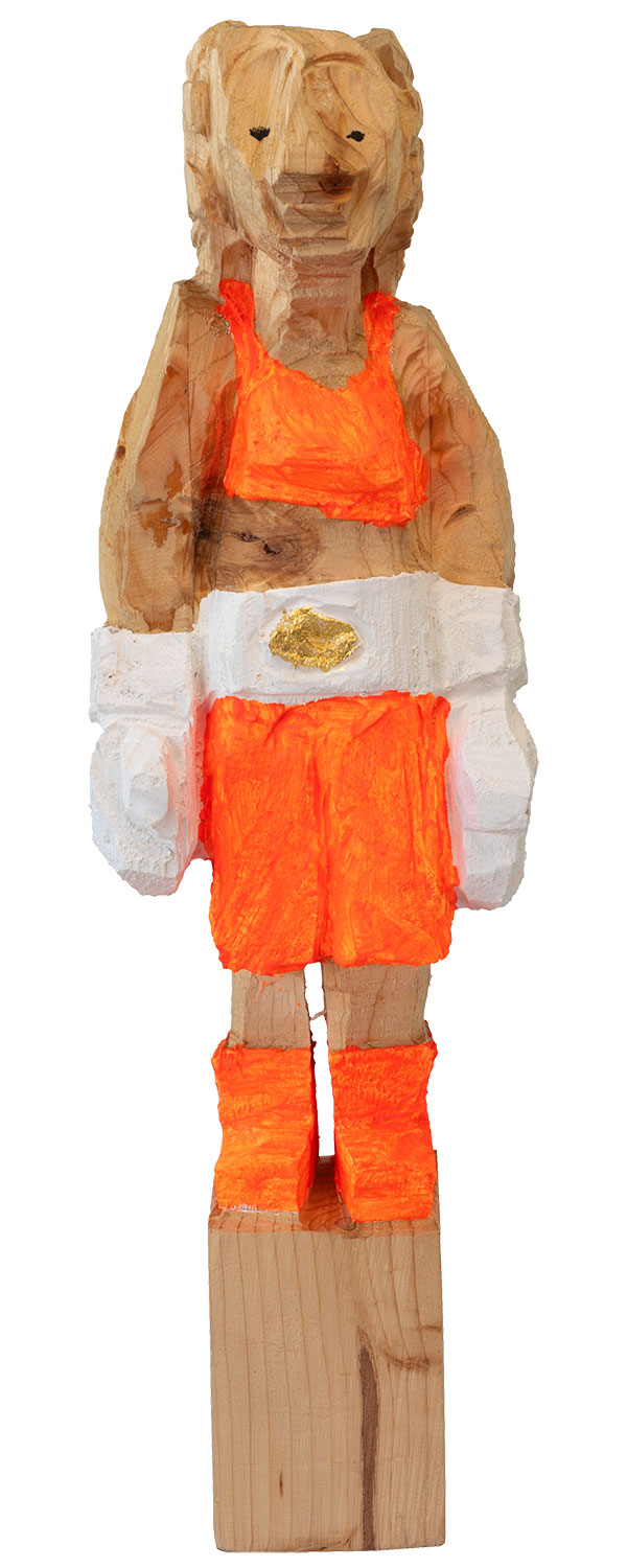 Produktinformation "Jörg Herz: Träskulpturen "Boxerin Neon Orange" (2024) (Original / Unikt)"