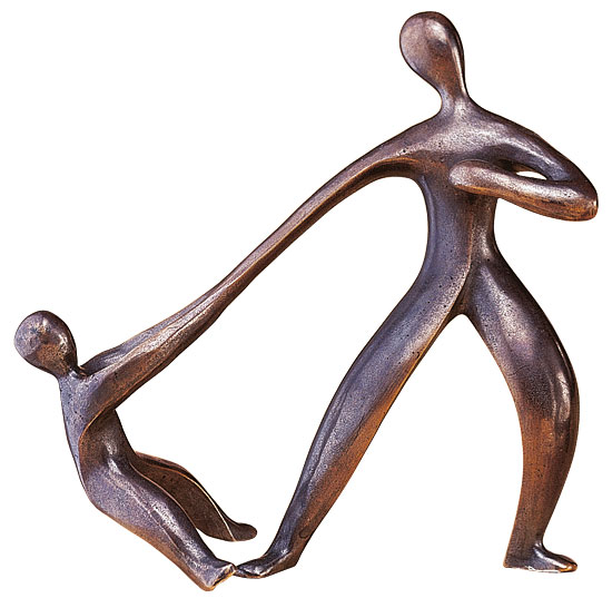 I denna mellanmänskliga karaktärsscen visar Zoller den energi som binder oss samman: Oavsett hur sonen mäter sin styrka mot fadern, förenas de två av ett obrytbart band. Skulptur i fin brons, begränsad upplaga om 700 exemplar, signerad och numrerad. Storlek 16 x 15 x 7 cm (B/H/D). Bronsskulpturen är gjuten i en detaljerad sandgjutningsprocess, trimmad, patinerad, polerad och vaxad. Objektet levereras med ett konstnärscertifikat.