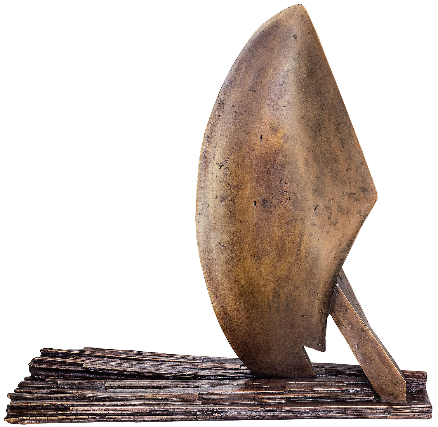 Skulpturen liknar ett fartyg som lämnar sin hemmahamn och påminner samtidigt om en plog som "bryter upp" jorden för sådd - oavsett vilket står den för början som ger upphov till något nytt.edition i brons, gjuten i processen med förlorat vax, mejslad och patinerad för hand. Begränsad upplaga om 14 exemplar, numrerad och signerad. Storlek 61 x 64 x 31 cm (H/W/D). Vikt 25,4 kg.