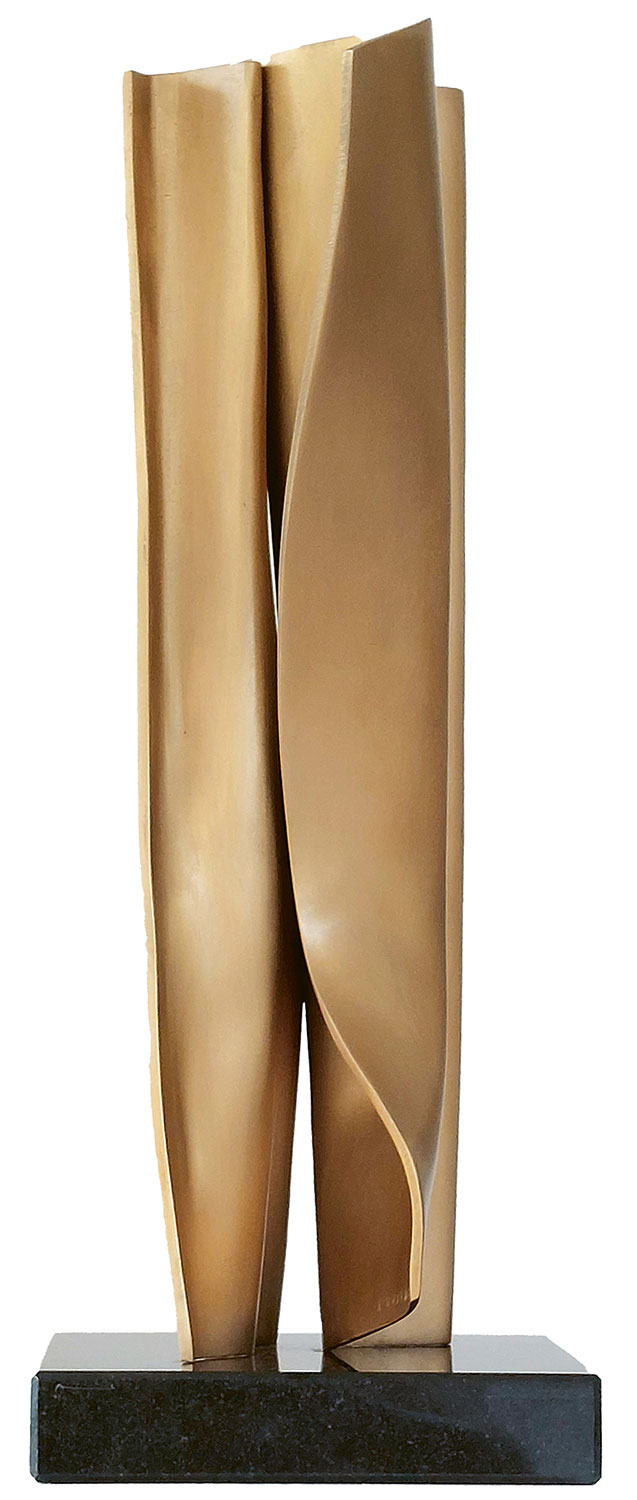 Oavsett från vilken sida den betraktas öppnar denna svepande skulptur alltid upp nya perspektiv och inbjuder dig att flytta den om och om igen.skulptur i borstad brons. Monterad på en svart, polerad granitbas. Begränsad upplaga om 10 exemplar, numrerad och signerad. Storlek inklusive bas 40 x 15 x 15 cm (H/W/D). Totalvikt ca 6,5 kg.
