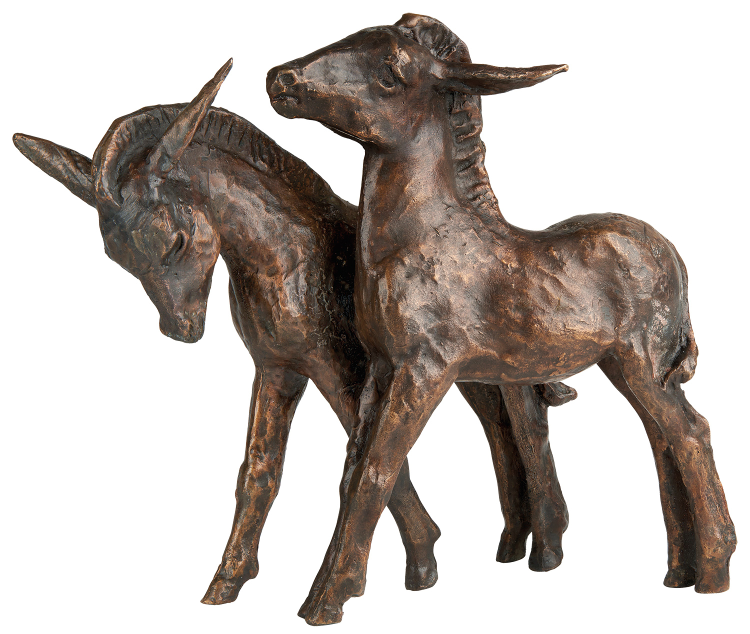 Åsnan som personlighet av Kurt Arentz - exklusivt på ars mundi. Kurt Arentz (1934-2014) rykte som skulptör vilar på två pelare: hans porträtt av berömda personligheter och hans avbildningar av djur gjorde honom internationellt erkänd. I båda fallen gick konstnären bortom det rena "porträttet". Medan Arentz formade sina motiv på fri hand var han inte bara ute efter en realistisk avbildning, utan framför allt intresserad av att skildra karaktären - hos både människor och djur. Anspråket på "likhet" är därför inte bara anatomiskt, även om Arentz behärskade denna uppgift som knappast någon annan. Och precis som många porträtterade personer bekräftade för konstnären att de kände igen sitt "inre jag" i en byst gjord av Arentz, syftade konstnären också på motivets karaktär i sina avbildningar av djur. Hans unga åsnepar, till exempel, är inte bara en imponerande exakt avbildning av fölen, fångade exakt i sin anatomi och rörelse, utan också en skildring av deras lekfullhet och sorglösa livsglädje. Precis som de människor som Arentz porträtterar är de också "personligheter" och igenkännbara som sådana. Med denna känsliga och hjärtevärmande karaktärsstudie har han skapat ett kärleksfullt monument över den sällskapliga, lojala följeslagaren. Skulptur i fin brons, gjuten med tekniken för förlorat vax, mejslad, polerad och patinerad för hand. Hämtad direkt från originalet och förminskad i storlek. Begränsad upplaga om 199 exemplar, numrerad, signerad och stämplad med gjuteriets och ars mundis stämpel. Med numrerat äkthetscertifikat och begränsningscertifikat. Format ca 21 x 24,5 x 10 cm (h/w/d). Vikt ca 3,2 kg. ars mundi exclusive edition.