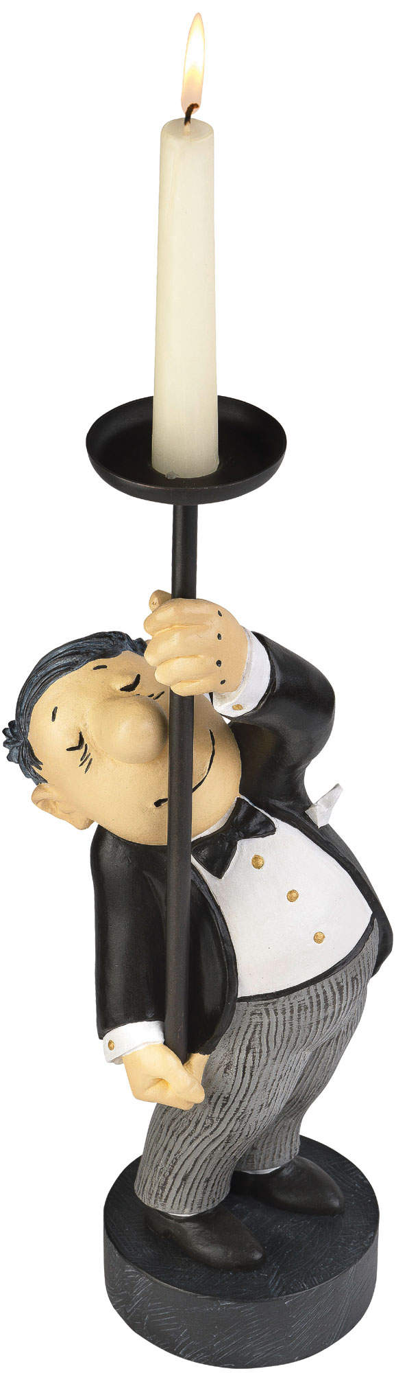 "Det är nästan omöjligt att bära sanningens fackla genom en folkmassa utan att bränna någons skägg", skrev Göttingenfysikern Georg Christoph Lichtenberg - säkerligen en av Loriots intellektuella förfäder - en gång i en av sina berömda "Sudelbücher". Loriots "fackelbärare" ger ljus och den rätta synen på saker och ting med ett stoiskt uttryck och uppenbar stolthet. Edition i handmålad konstgjutning med löstagbar hållare (patinerad bronsstav med kopparskål). Begränsad upplaga om 1 499 exemplar, individuellt numrerade och signerade av Loriot. Numrerat äkthets- och begränsningscertifikat. Storlek 11 x 32 x 9 cm (B/H/D), vikt 2 kg. ars mundi exclusive edition. Levereras utan ljus. På grund av materialet, som kan smälta vid stark värme, får ljusen inte brännas ner helt. Lämna inte brinnande ljus obevakade.