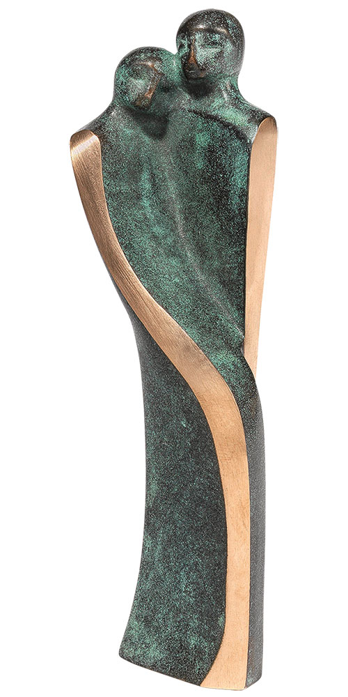 Dessa två stiliserade bronsfigurer är intimt förbundna med varandra. En stark symbol för harmoni. Gunmetalbrons, sandgjuten, patinerad och polerad för hand. Storlek 14,5 x 6 x 5 cm (h/w/d).