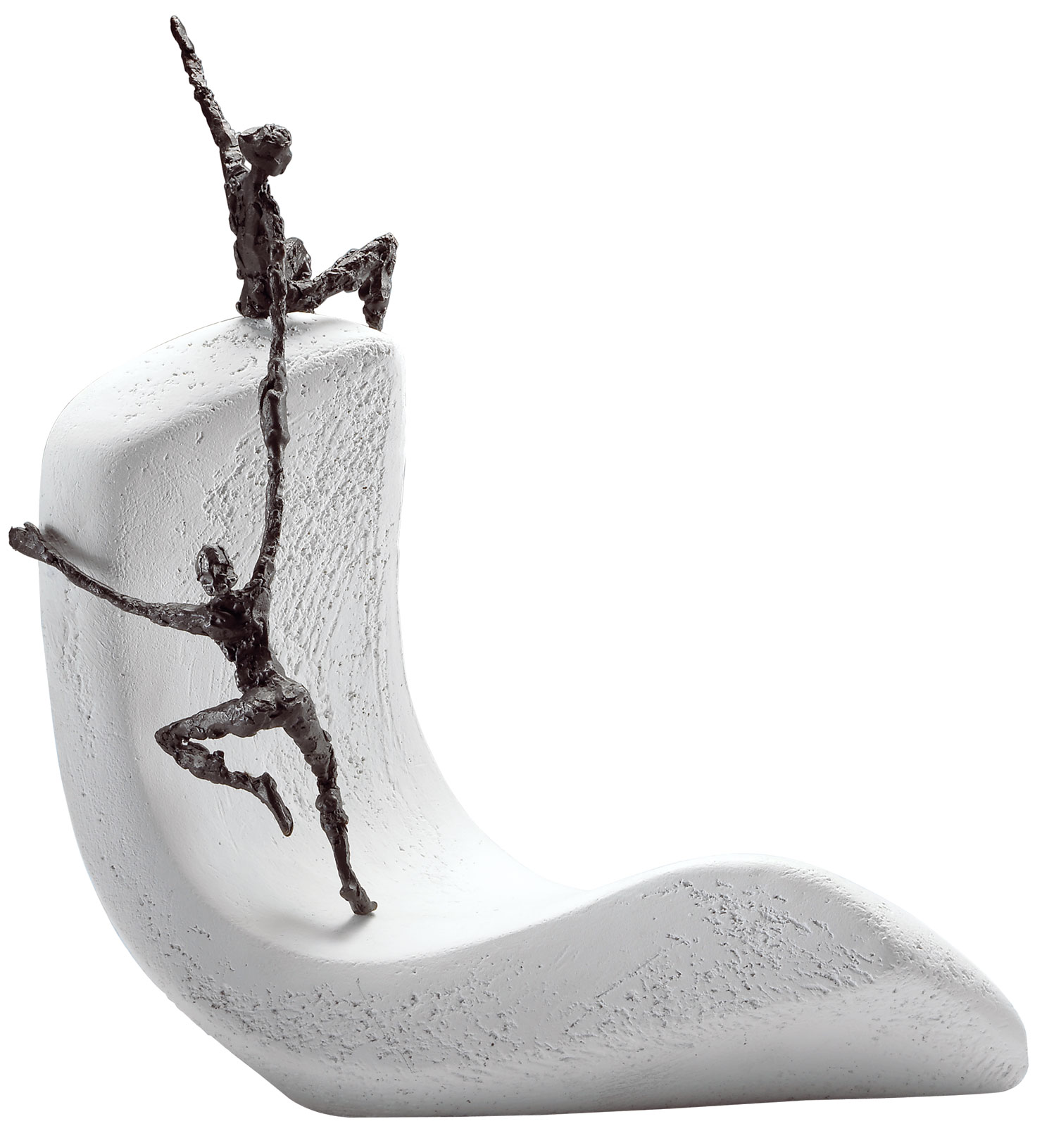 Ur serien "Business and Motivation": "Det finns ingen större lycka i världen än att kunna hjälpa en annan människa. Båda är en gåva - att få hjälp och att ge hjälp", säger den framgångsrike skulptören. Detta verk är en idealisk tackgåva till en god vän. Skulpturen imponerar med den djupa kontrasten mellan den mörka patinerade bronsen och den ljusa gjutna stenbasen och levereras med en expertis. Liten skulptur av fin brons, patinerad och vaxad för hand. Storlek inkl. bas 23 x 26 x 14 cm.