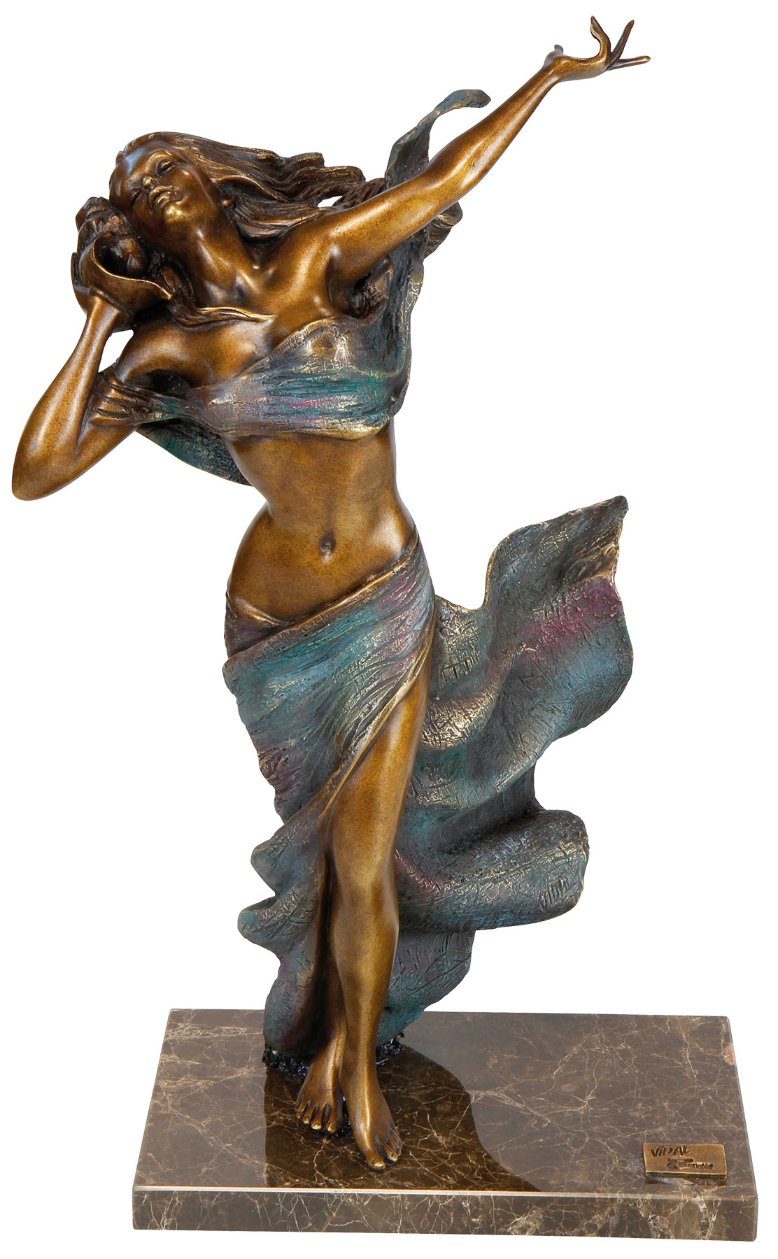 "Kroppen är själens strand", säger ett gammalt ordspråk. Sensuell skönhet av den spanske skulptören Vidal (*1953), som lyssnar till prasslet från en snäcka. Skulptur av fin brons, patinerad för hand. På en bas av marmor. Begränsad upplaga om 2.999 exemplar, med numrerat certifikat. Signatur. Storlek inklusive sockel 49 x 26 x 17 cm (h/w/d). Vikt ca 8,4 kg.