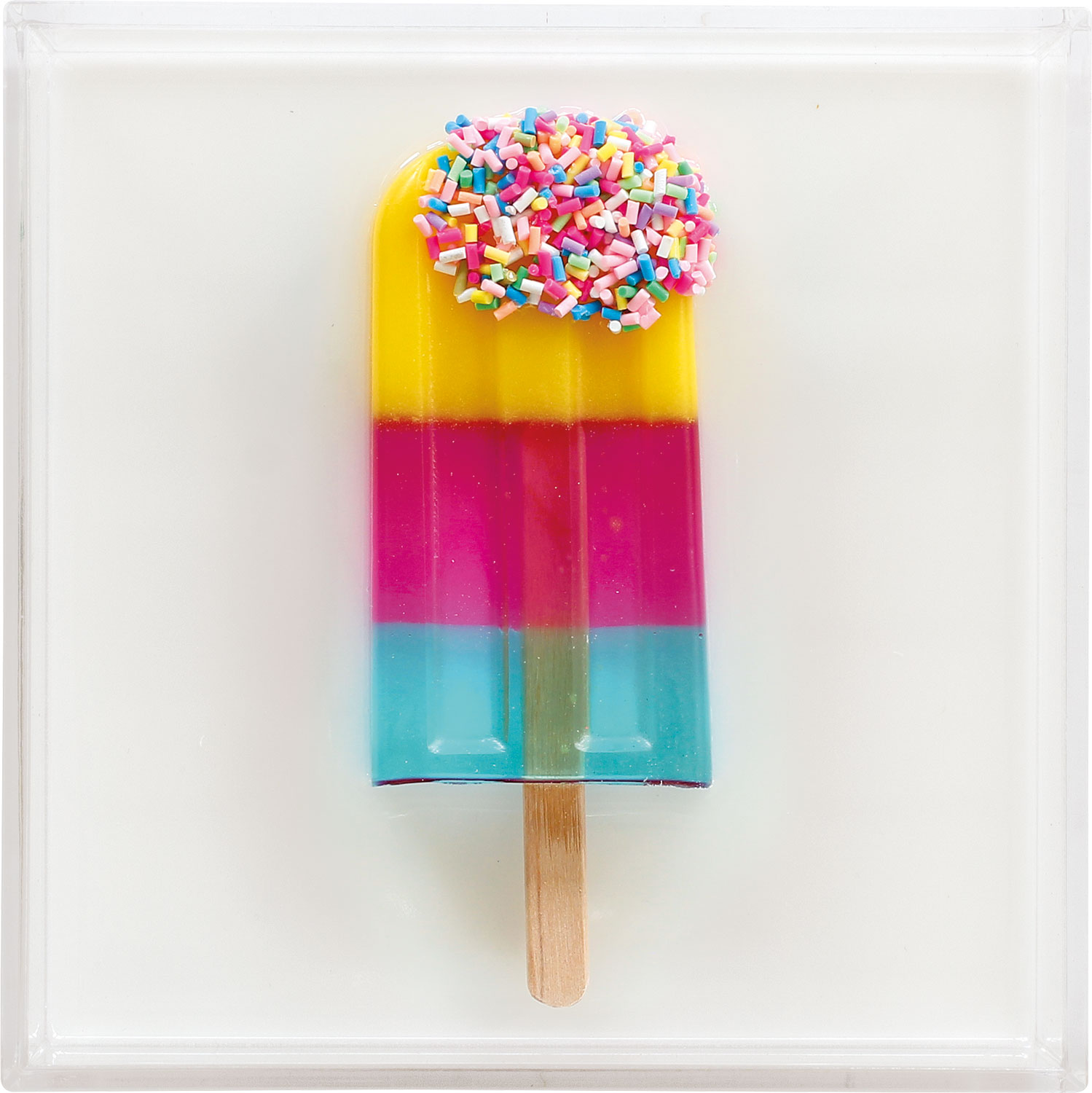 Detta lilla konstverk av Michael Pfannschmidt kombinerar popkonstens lekfullhet och färgrikedom med vardagskonsten.väggobjekt av akryl och epoxiharts på plexiglas. Varje verk är unikt och handgjort av konstnären, så det kan förekomma små variationer. Signerad och daterad på baksidan. Med upphängningsanordning. Storlek 16 x 16 x 4,5 cm (H/W/D). Vikt ca 0,5 kg. Version i gul-rosa-blå.