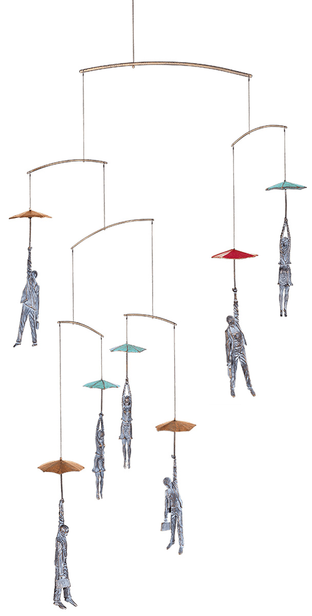 Det föränderliga "affärsklimatet" får Trpáks protagonister att dansa hjälplöst i luften - bra för dem som har en "räddningsfallskärm"... Utgåva i brons, gjuten med tekniken för förlorat vax, mejslad och patinerad för hand. Begränsad upplaga om 99 exemplar, numrerad och signerad. Höjd 85 cm. Ø 50 cm. Vikt ca 1,73 kg.