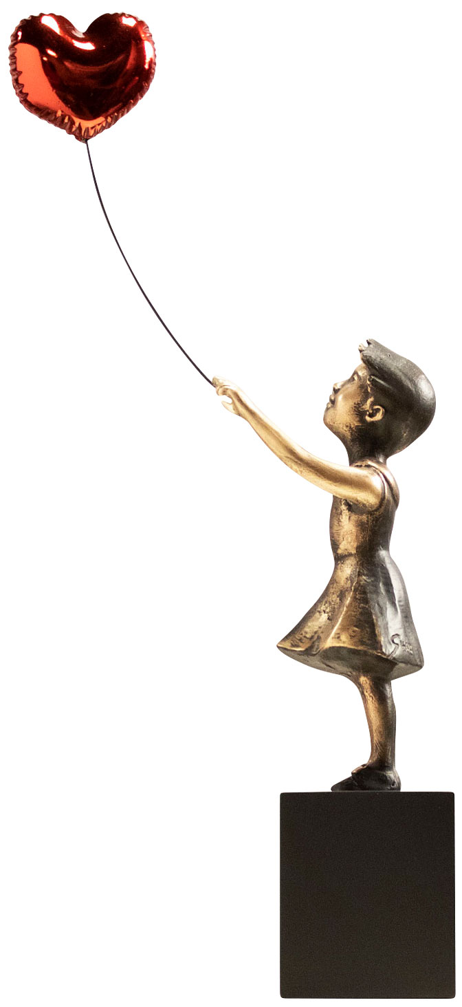 Produktinformation "Miguel Guía: Skulptur "Flicka med hjärta av röd ballong", brons"