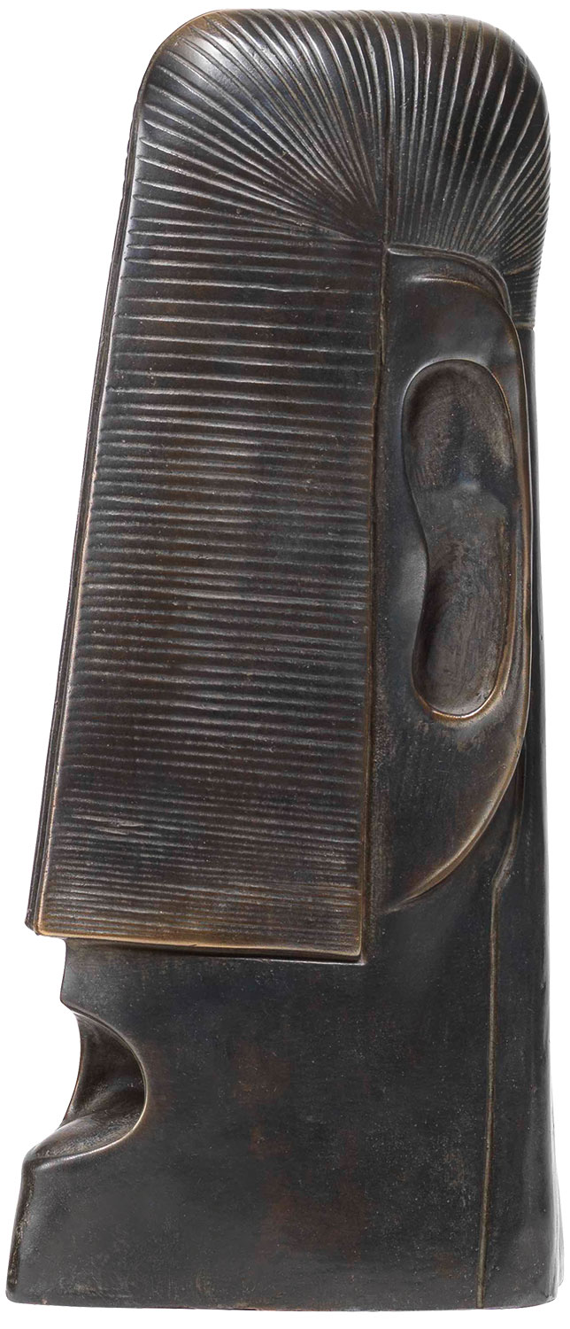 Rainer Kriester (1935-2002) är en av de viktigaste tyska skulptörerna från slutet av 1900-talet. Hans internationella genombrott kom på 1980-talet, då han skapade ett stort antal "huvudtecken", några av dem monumentala figurer i brons, trä och sten. Det är inga masker, utan högst individualiserade huvuden, graverade med spår av levt och upplevt liv. Det var konstnärens uttryckliga önskan att nedskalade versioner av hans storskaliga verk skulle framställas i brons. Vi har nu producerat en numrerad och signerad specialutgåva om 49 exemplar i antingen mörk eller ljus patinerad brons som en exklusiv utgåva för ars mundi. Original: 1982, askträ, 195 x 60 x 95 cm, WVZ 230, i familjen Kriesters privata ägo. Skulptur i fin brons, gjuten med tekniken för förlorat vax, mejslad, polerad och mörkpatinerad för hand. Gjuten direkt från originalet och förminskad. Begränsad upplaga om 49 exemplar, individuellt numrerade, signerade och kontrollstämplade med gjuteriets stämpel. Med numrerat äkthetscertifikat och begränsningscertifikat. Format 24,5 x 10 x 11,5 cm (h/w/d). Vikt ca 3,2 kg. ars mundi exklusiv utgåva.