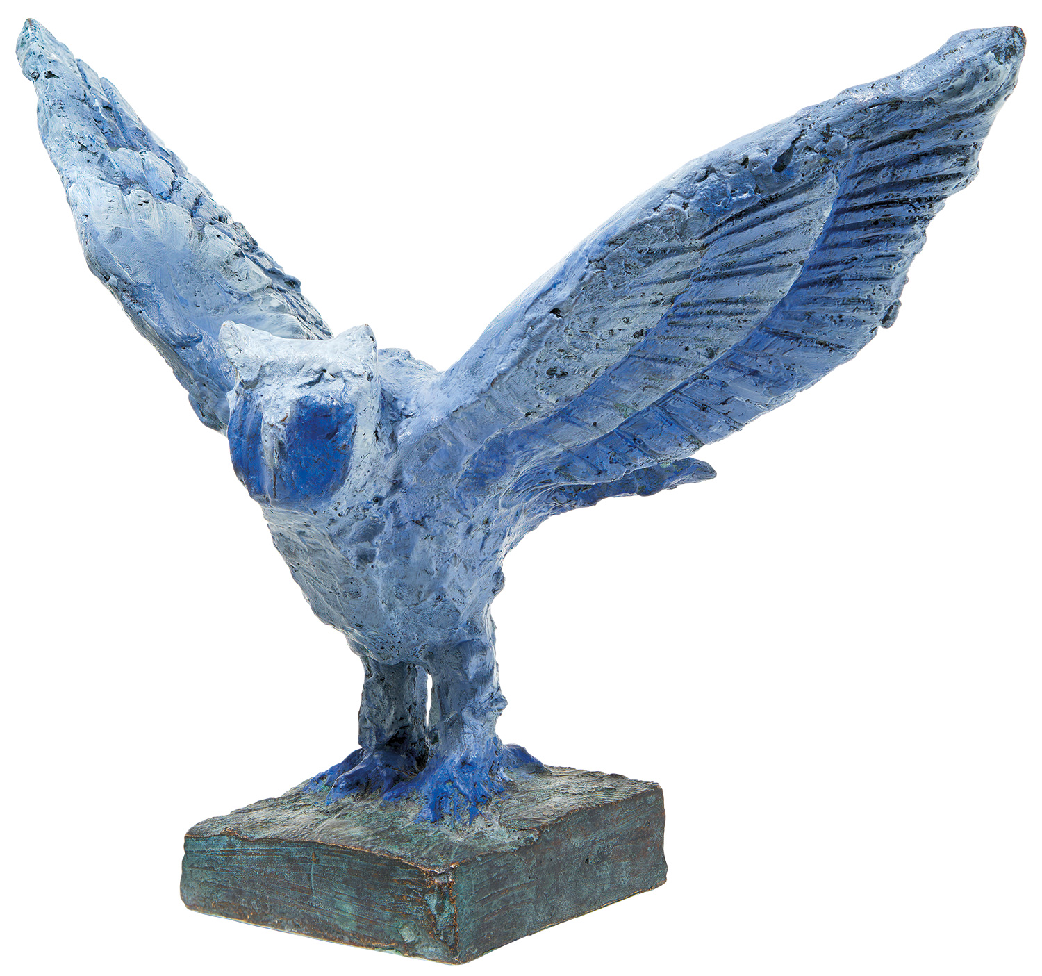 Thomas Jastram ser sig själv som en klassisk skulptör. Hans skulpturala verk omfattar verk i naturlig storlek - däribland många för offentliga platser som den imponerande Neptunusfontänen i Warnemünde, som uppfördes 2022 - porträttbyster och små skulpturer som hans "Sophia". Titeln på hans uggleskulptur syftar på den visdom som sedan antiken har tillskrivits nattfågeln som följeslagare till Athena/Minerva. Ugglan är därför också en symbol för filosofi. Jastram visar den med brett utbredda vingar, redo att lyfta. Skulptur i fin brons, gjuten med tekniken för förlorat vax, mejslad, polerad och patinerad för hand. Begränsad upplaga om 49 exemplar, varav 9 handmålade av konstnären (erbjuds här), numrerade, signerade och försedda med gjuteriets och ars mundis stämplar. Med numrerat äkthets- och begränsningscertifikat. Storlek ca 23 x 36 x 15,5 cm (h/w/d). Vikt ca 3,3 kg. ars mundi exclusive edition. Version handmålad av konstnären. Varje del har olika färg. Unik i sitt slag.