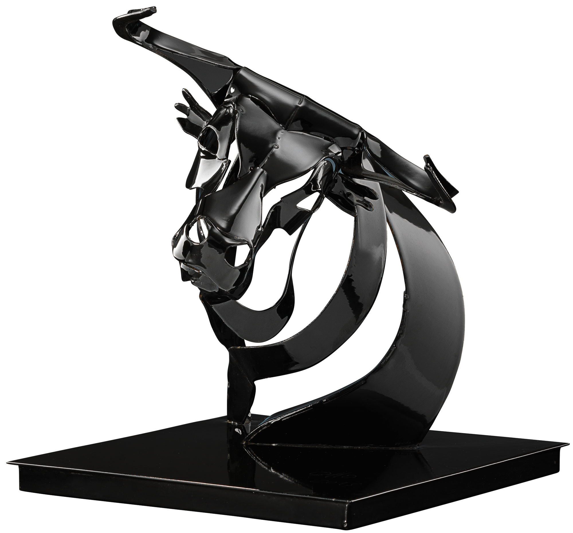Tjurporträttet "Bull de la noche II" av Thomas Otto domineras av organiska, flödande former. Otto använder också skickligt tomma utrymmen och negativa former, som å ena sidan ger hans stålverk en stor lätthet och å andra sidan möjliggör olika perspektiv beroende på betraktningsvinkeln. Serial unique piece, 2013, stålskulptur, svart emaljerad. Begränsad upplaga om 10 exemplar, numrerad och signerad för hand. Varje del är handgjord och emaljerad av konstnären. Storlek 35 x 30 x 30 cm (h/w/d). Vikt 5,8 kg.