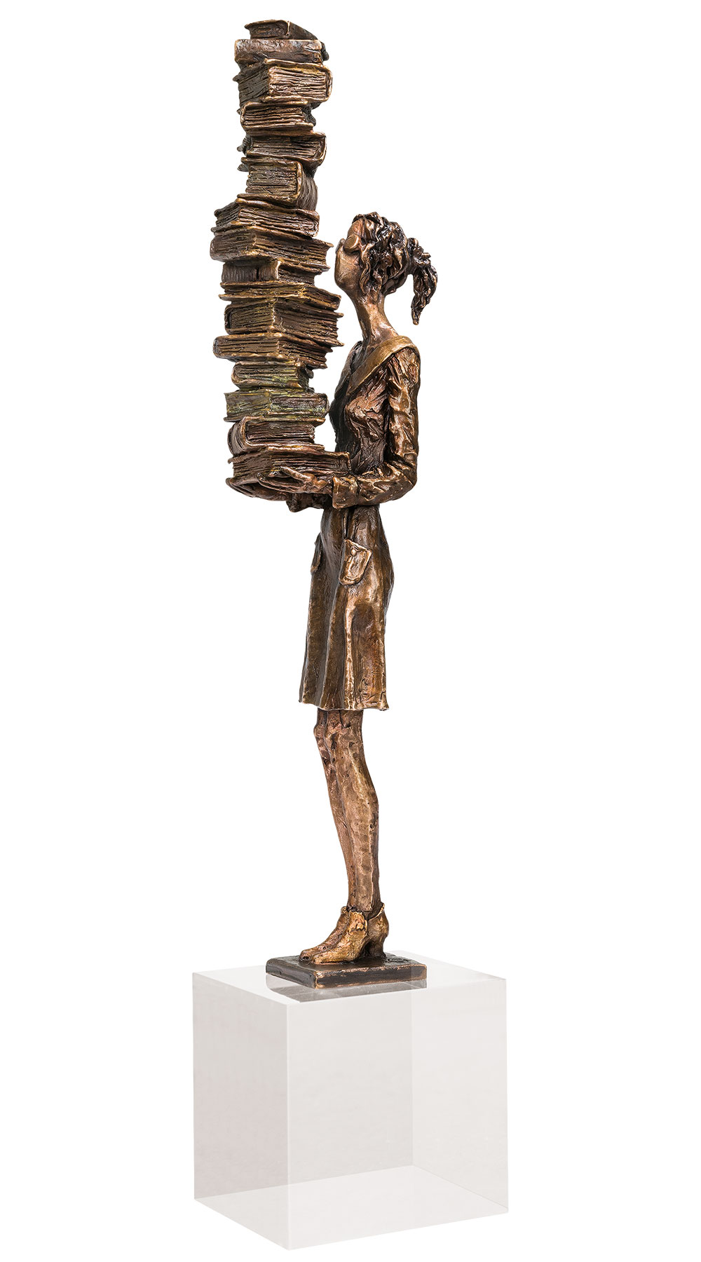 Hennes arbetsbörda är enorm, men hon verkar ställa sig själv poetens fråga: Var är den visdom som vi har förlorat i kunskap? Skulptur i fin brons, gjuten med tekniken för förlorat vax, mejslad, polerad och patinerad för hand. På en bas av plexiglas. Begränsad upplaga om 99 exemplar, numrerad och signerad. Format 38 x 7,5 x 7,5 cm (h/w/d) inkl. sockel. Format sockel 7,5 x 7,5 x 7,5 cm. Vikt 2,2 kg.