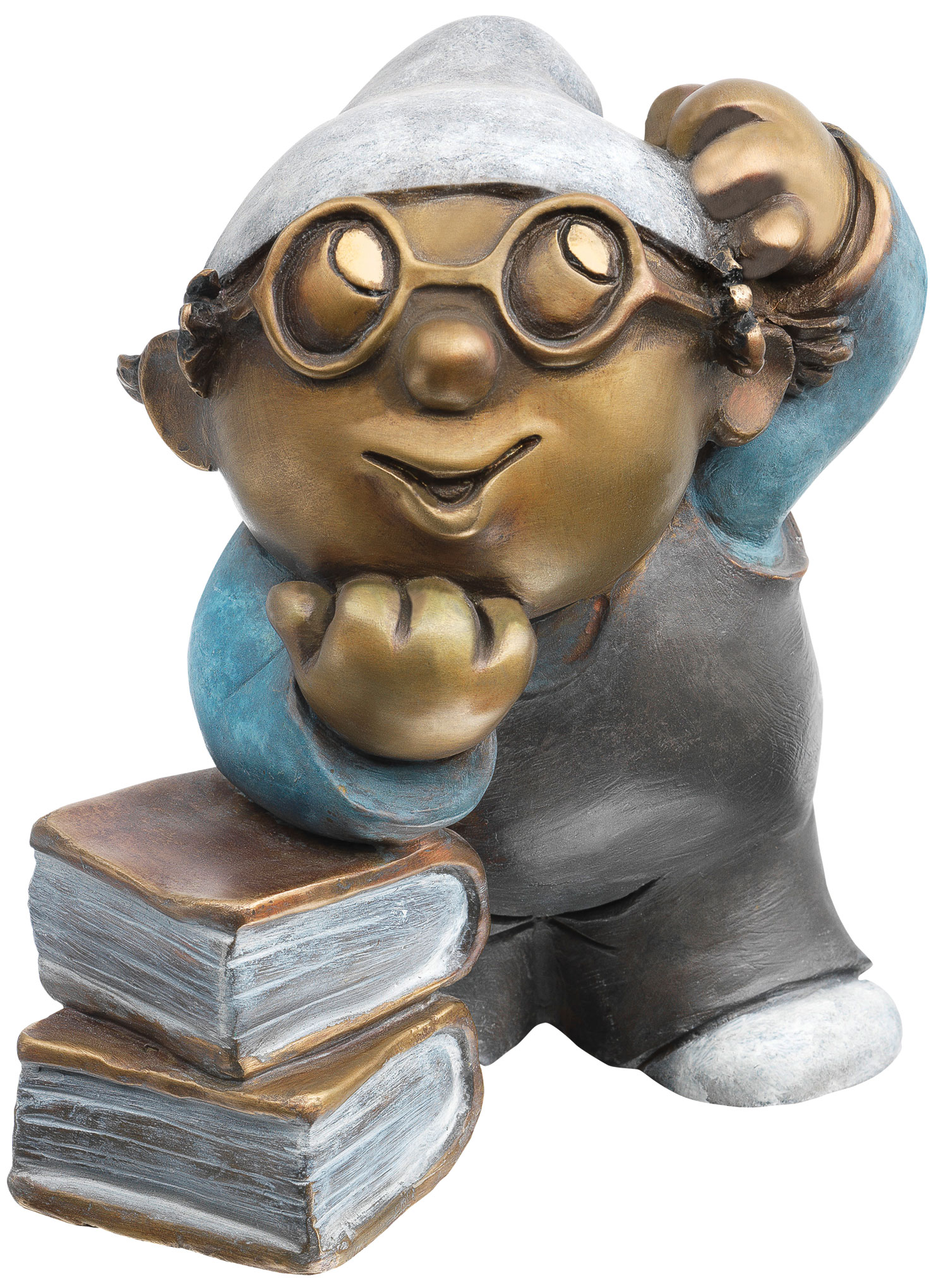 50 års erfarenhet av film, mer än 40.000 korta reklamfilmer och många andra "kaprioler". Mainzelmännchen är kult. De har varit en del av vår vardag sedan den 2 april 1963 och många av oss har redan som barn tagit Anton, Berti, Conni, Det, Edi och Fritzchen till våra hjärtan. För att markera deras 50-årsjubileum på scenen 2013 finns det nu ytterligare en bronsskulptur i vår Mainzelmännchen-serie. Skulpterad av deras andlige far, grafikern och scenografen Wolf Gerlach själv, och utgiven av honom och ZDF i en strikt begränsad upplaga exklusivt för ars mundi. Mainzelmännchen "Det, tänkaren": Ännu en stjärna i den stora raden av Rodins "Tänkare": den smarta Det, Mainzelmännchens tänkare. Den begränsade upplagan på 499 exemplar i flerfärgad patinerad brons är gjuten med stor hantverksskicklighet med hjälp av den traditionella tekniken med förlorat vax. Varje exemplar är skapat exklusivt för ars mundi, bär Wolf Gerlachs signatur och är individuellt numrerat. Varje skulptur är unik. Med handnumrerat certifikat. Format ca 14,5 x 15 x 10 cm (B/H/D). Vikt ca 2,4 kg.
